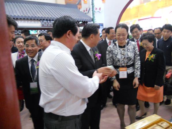 原國務(wù)院副總理回良玉來到中國北京第十屆國際農(nóng)交會江蘇高郵鴨集團(tuán)展臺